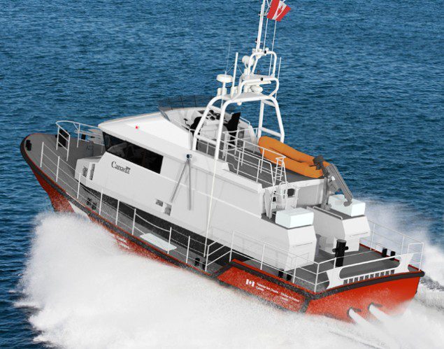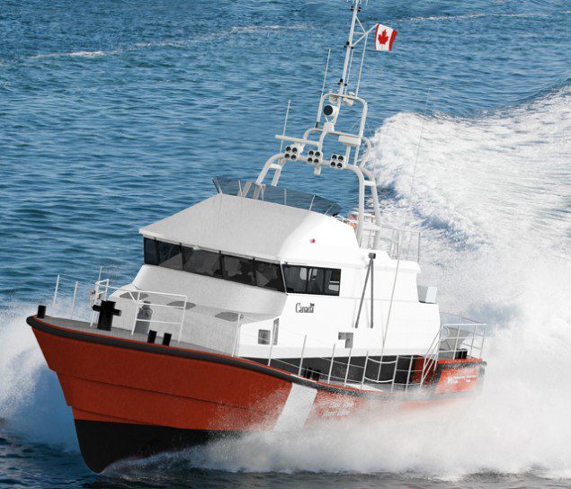 This new design was developed from the successful similar vessels known as the “Severn” Class operated by the Royal National Lifeboat Institution (RNLI) of the United Kingdom. The new Canadian design is larger with a greater range than the RNLI vessel and has been specifically designed to handle the worst weather encountered year around in the waters off Newfoundland and Nova Scotia.